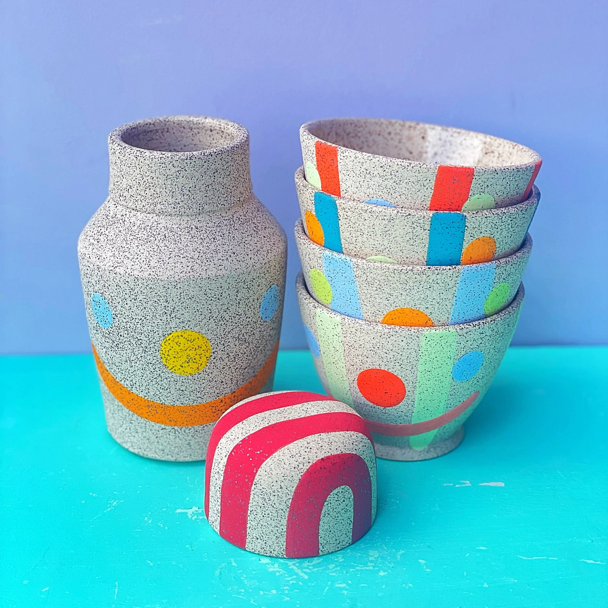 Categories: ALL CLASSES CUPS + MUGS PLATES + BOWLS BUTTER DISHES SETS VASES + BOTTLES HOME GOODS ALL CLASSES CUPS + MUGS PLATES + BOWLS BUTTER DISHES SETS VASES + BOTTLES HOME GOODS cash x dax x vayne spray can $75.00 date night for two $150.00 4 week wheel throwing course $400.00 martini shaker & cups set $100.00 Sold out teal snake teapot $110.00 Sold out mint green mug with orange snake $56.00 Sold out baby nose bubble mug $60.00 Sold out south beach pink snake serving bowl $90.00 Sold out bow nose bubble mug $60.00 Sold out helping hand toilet paper holder $80.00 Sold out yer still the one mug $60.00 Sold out big snake plant pot $75.00 Sold out baby steps mug $60.00 Sold out green snake dinner bowl $70.00 Sold out happy & sad clown mug $60.00 Sold out blue snake dinner bowl $70.00 Sold out clown martini cup set $80.00 Sold out helping hand TP holder Sale Price: $75.00 Original Price: $90.00 Sold out cloud racer wavy mug $60.00 Sold out black snake dinner plate $65.00 Sold out cherry nose flower vase $65.00 Sold out coral snake serving bowl $70.00 Sold out black snake cereal bowl $56.00 Sold out